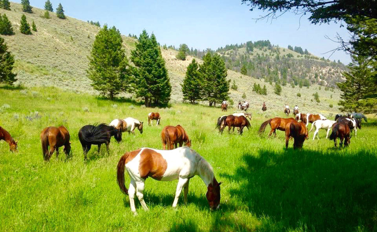 3. Tag: Nach dem Frühstück verlassen Sie die Ranch und der Horse Drive beginnt! Heute muss die Herde vom Middle Creek zum Warm Springs Campsite.